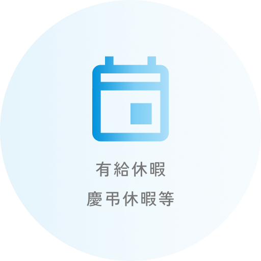 当社では有給休暇、慶弔休暇、社会保険完備(雇用保険、労災保険、健康保険)はもちろん、働きやすい会社を目指し、その他の手当を充実させています。
